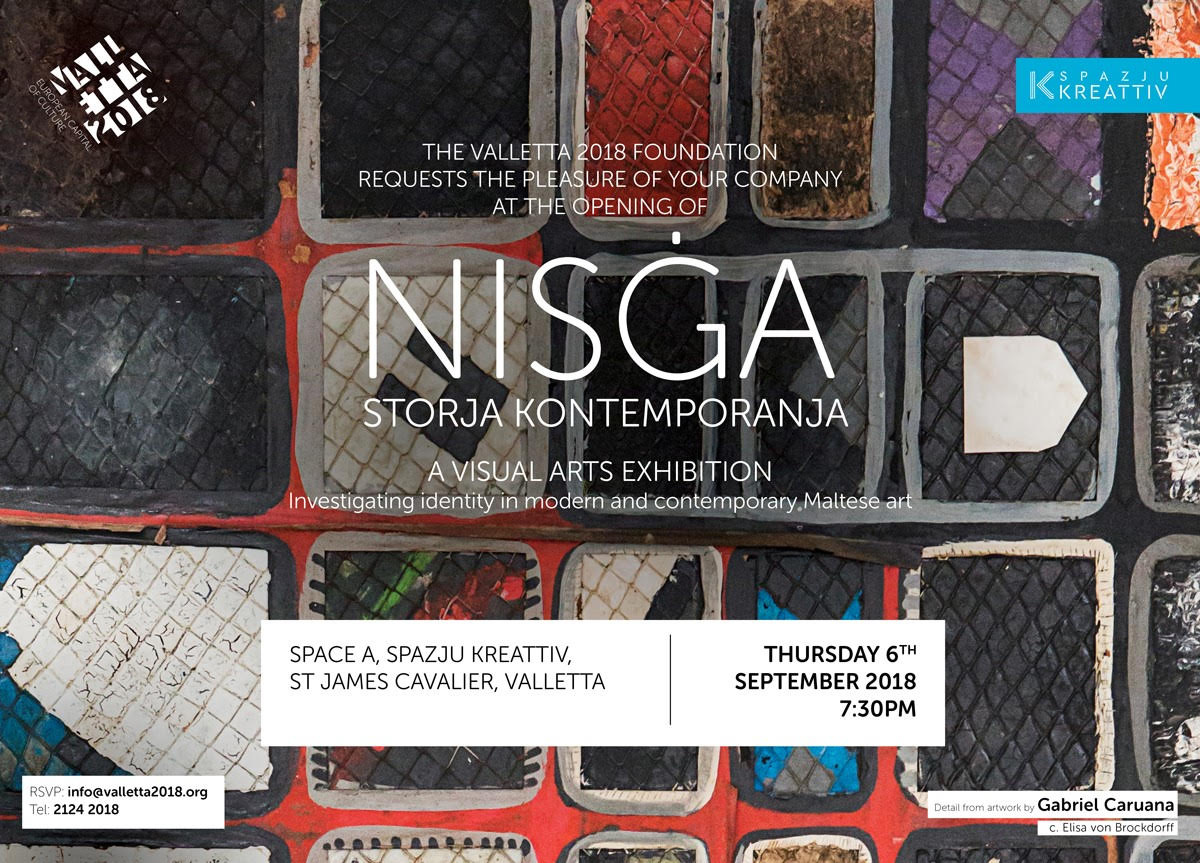 Nisġa: Storja Kontemporanja is an art exhibition that explores the layered identity of the Maltese artist across six thematic chapters. The word nisġa—meaning "weave" in Maltese—serves as both metaphor and method, evoking a tapestry of unexpected narratives, connections, and relationships.