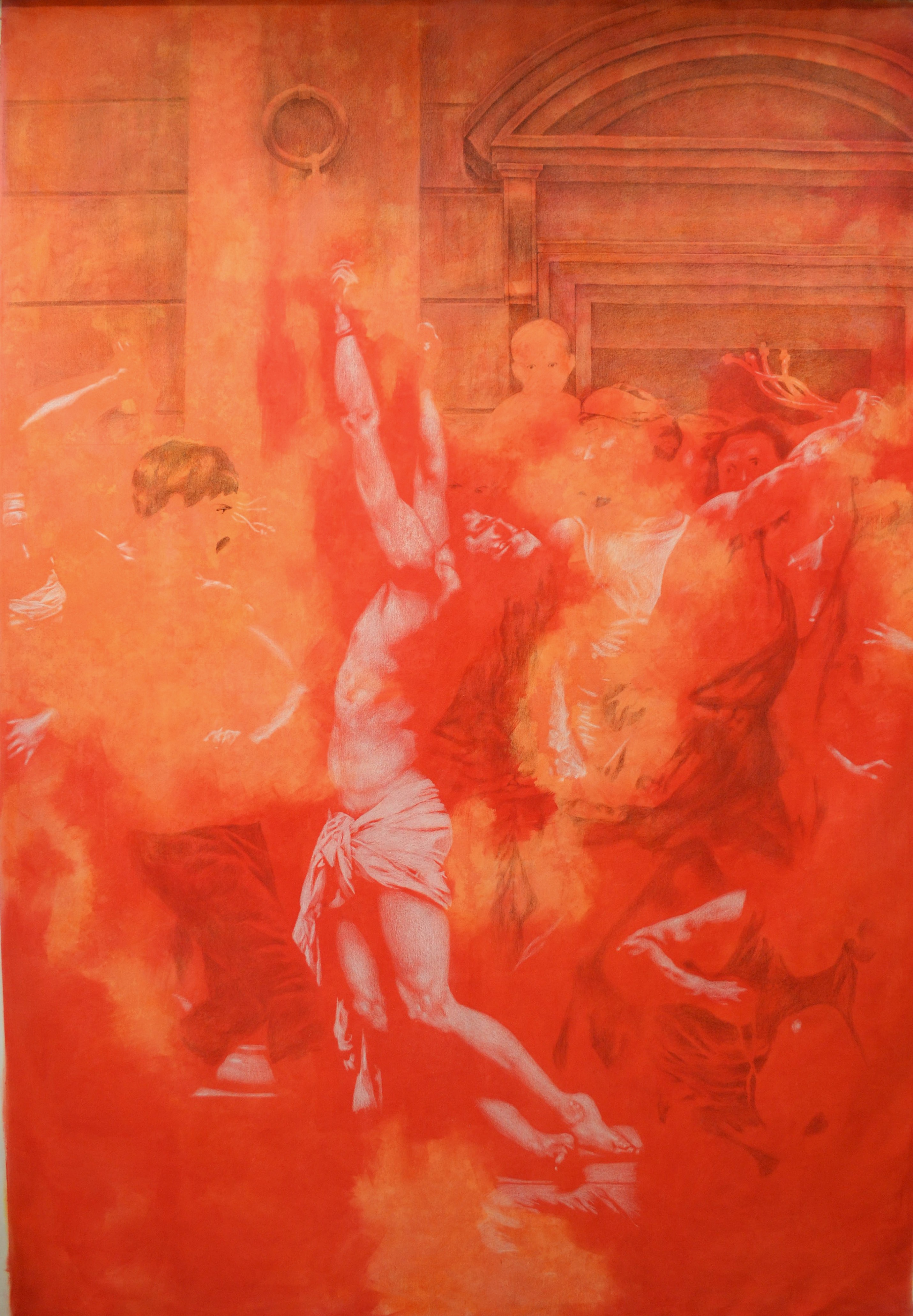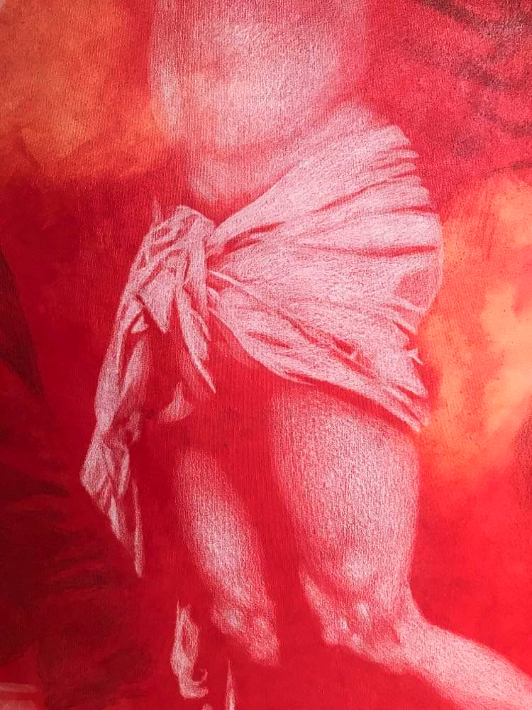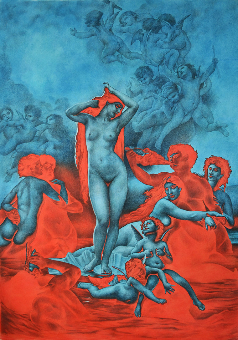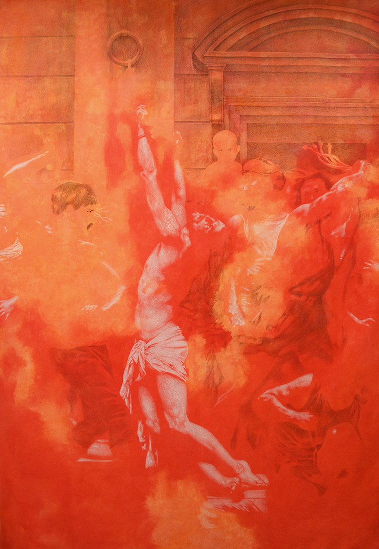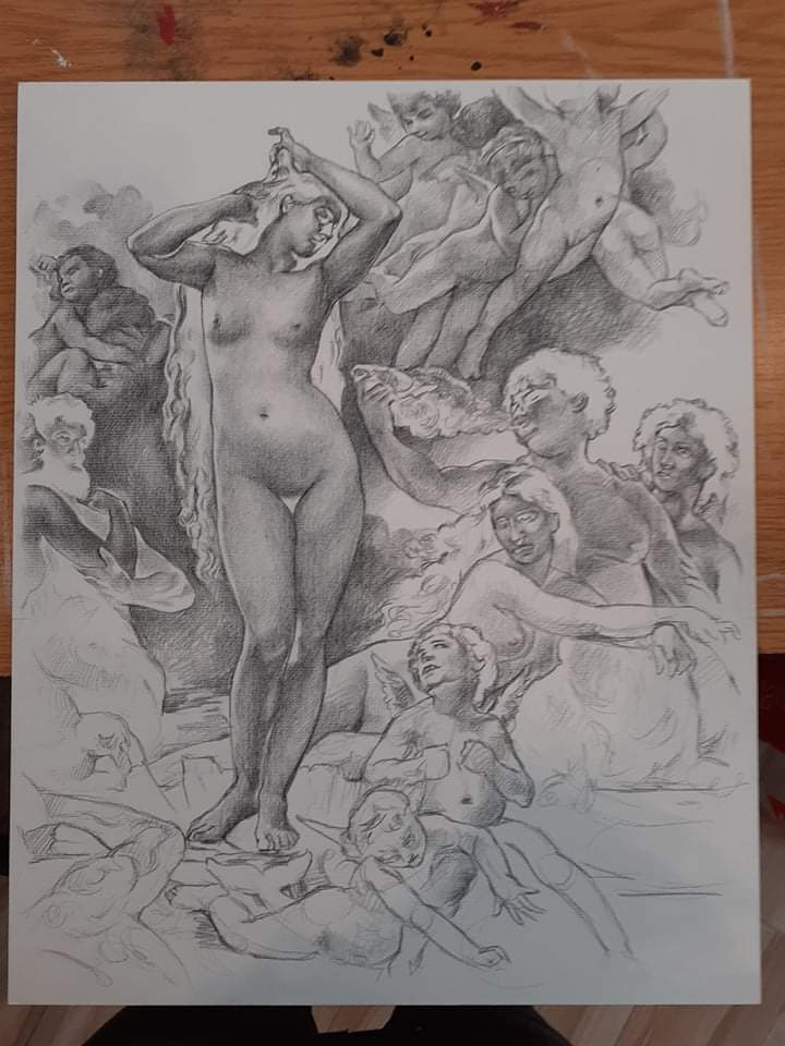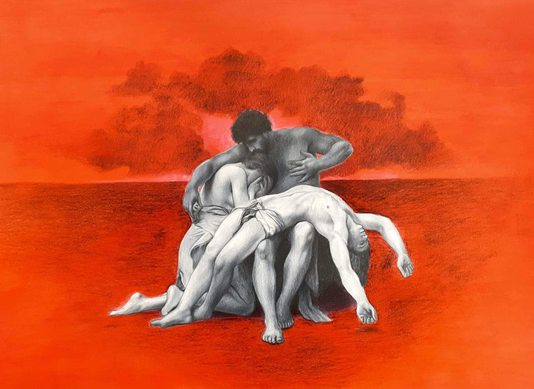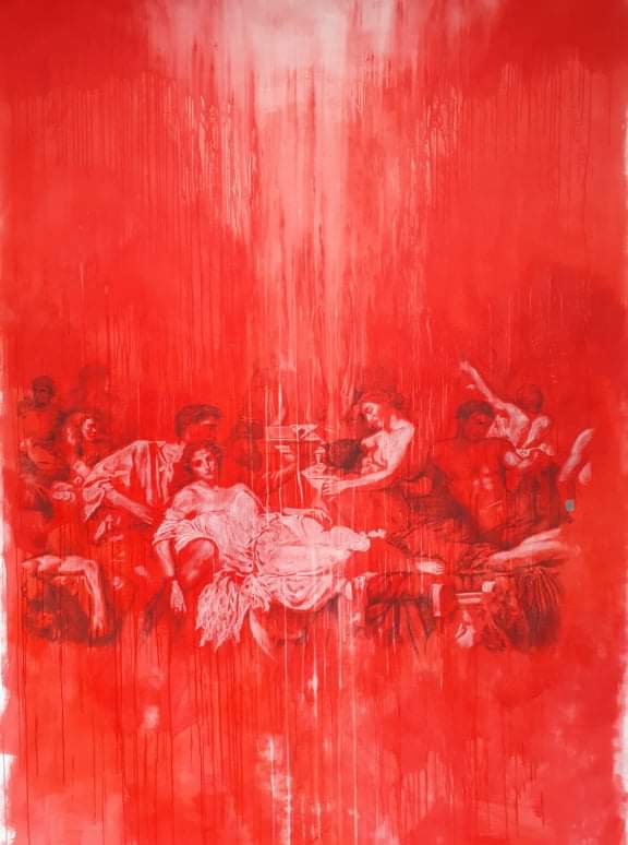 The project explores how birth, death, and everything in between are both deeply personal and yet shared across generations. Art becomes the bridge between past and present, connecting individual memory with collective human consciousness. Inspired by this idea, most of the works are reinterpretations of historical paintings that symbolise humanity’s continuous cycle of pain, faith, and renewal. Pieces such as The Flagellation of Christ, The Risen Christ, and The Apotheosis evoke the artist’s childhood memories of sacred rituals and family gatherings, while The Birth of Venus and The Romans in their Decadence express the duality of love and moral decay — the two faces of the human condition.