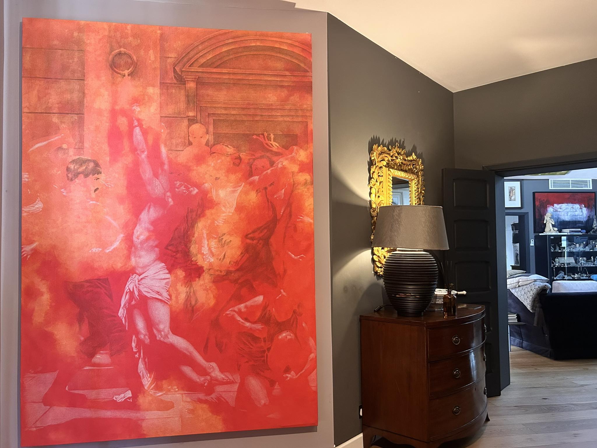 The exhibition’s unifying element is the colour red, representing blood, passion, divinity, danger, and life itself — as well as the artist’s daughter, Scarlett. It acts as a thread binding joy and loss, hope and resignation.